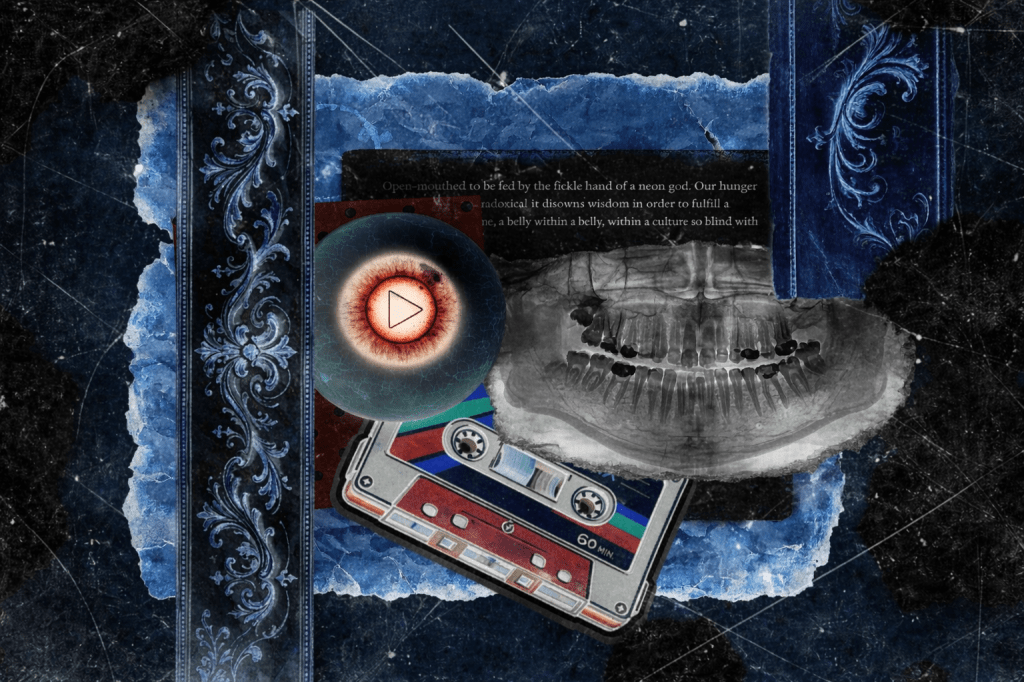 Open-mouthed to be fed by the fickle hand of a neon god. Our hunger so insatiable and paradoxical it disowns wisdom in order to fulfill a Matryoshka syndrome, a belly within a belly, within a culture so blind with participation.